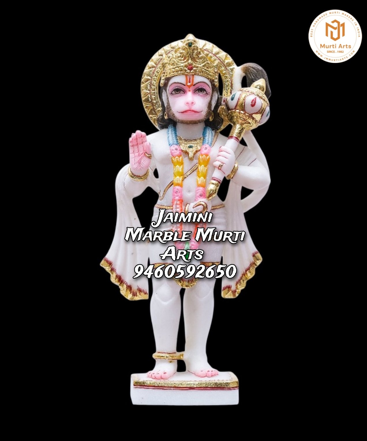 Premium White Marble Hanuman Ji Murti made from original Makrana marble. Handcrafted with fine detailing, ideal for home temple and mandir. Available in all sizes with all India and worldwide delivery.